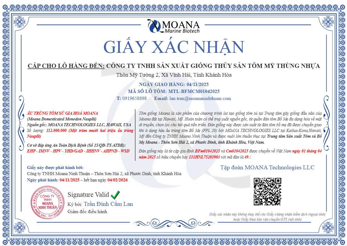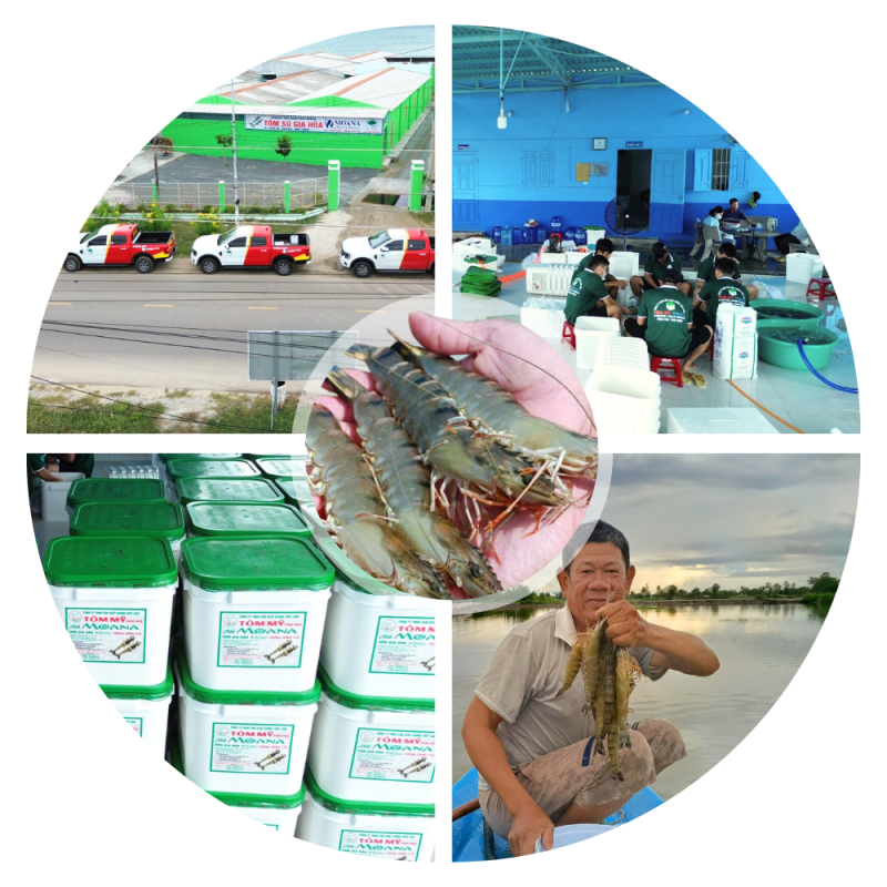 “Tôm Mỹ Moana – Lớn nhanh, khỏe mạnh, hiệu quả vượt trội.” “Moana – Nhanh lớn, lợi nhuận lớn.”