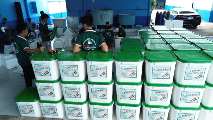 Tôm được đóng trong thùng Nhựa, nắp có dập chữ nổi,dập biên chắc chắn, bảo đảm an toàn trong quá trình vận chuyển cho đến tay bà con